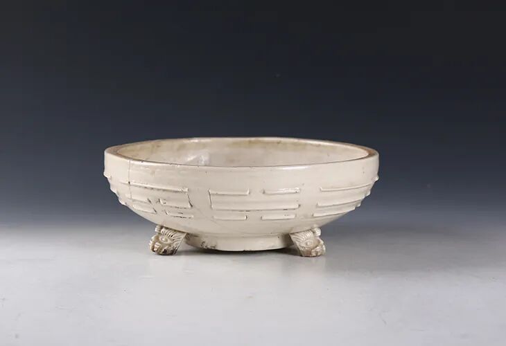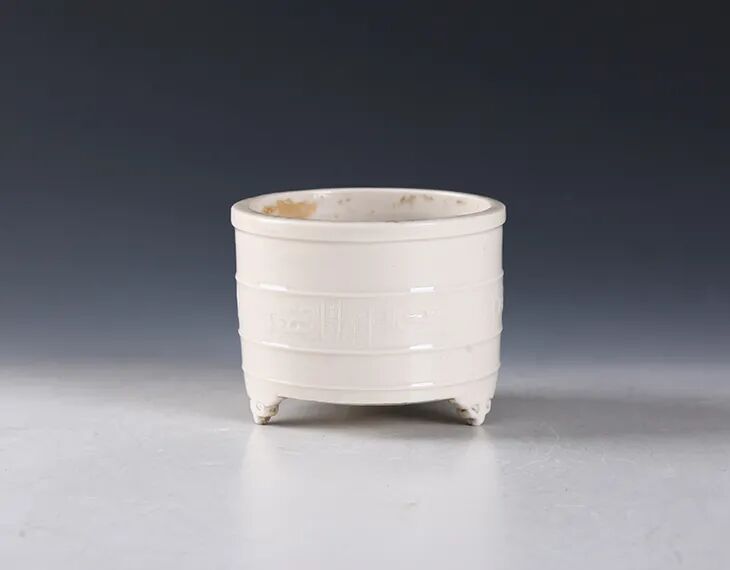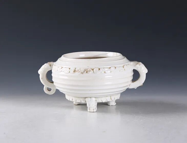 明·白釉八卦纹三兽足炉