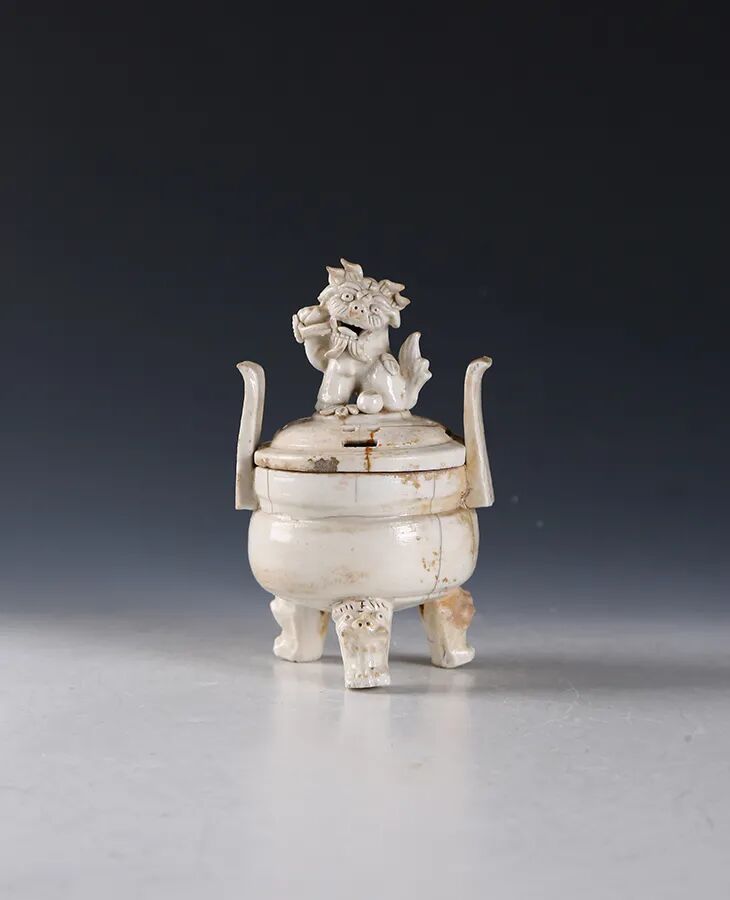 明·白釉八卦纹狮钮熏炉