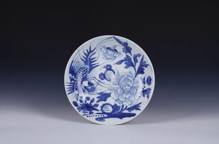 清·青花凤穿牡丹纹盘