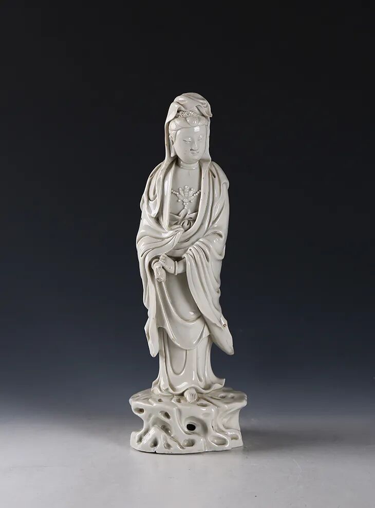 明·白釉立岩观音