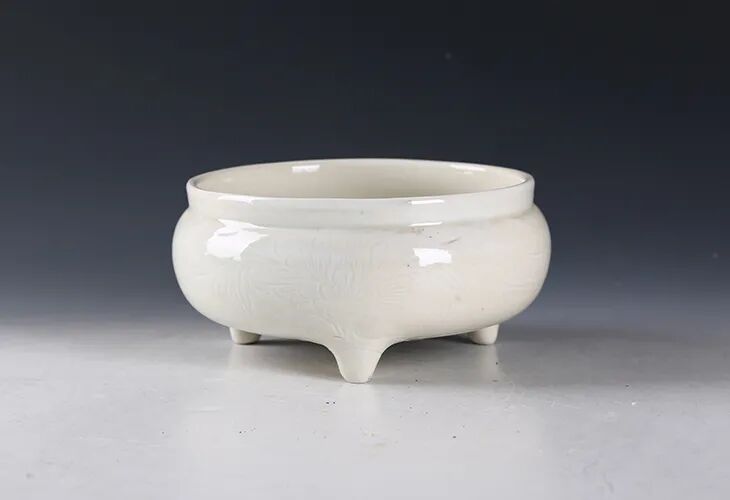 明·白釉印牡丹纹三足炉