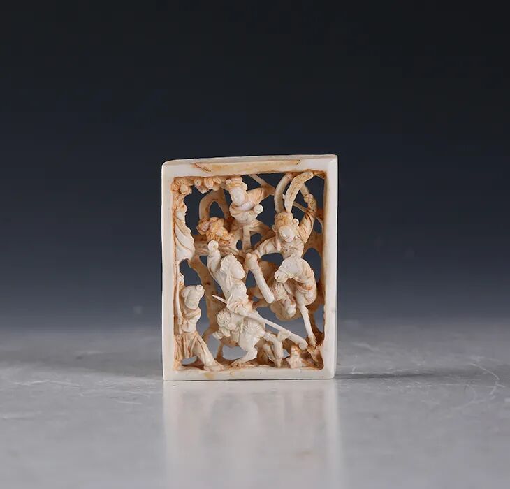 明·白釉“穆桂英挂帅”四方雕