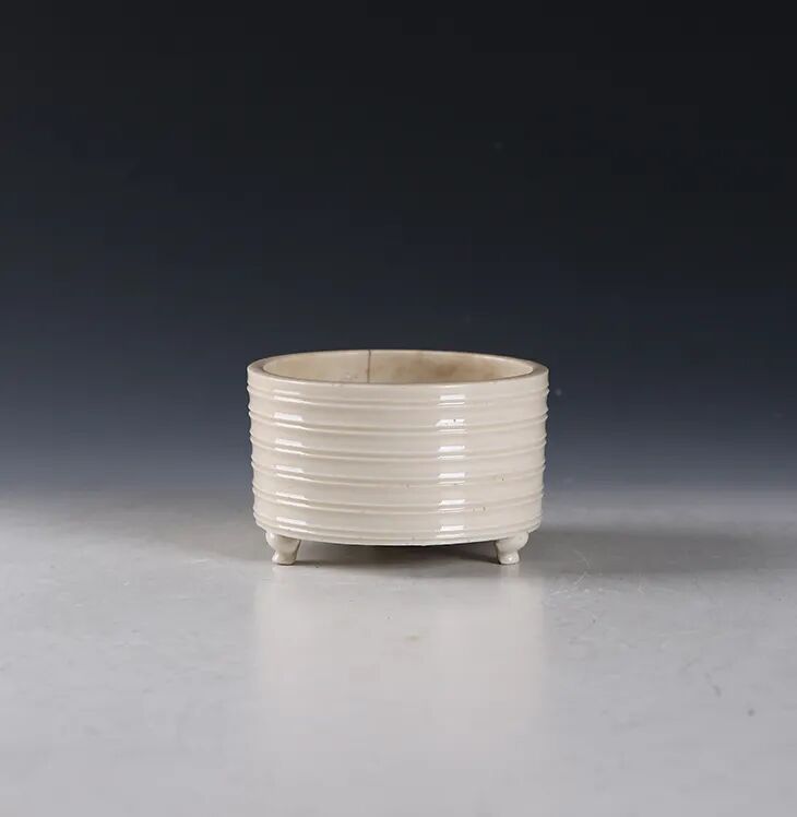明·白釉竹节三足炉