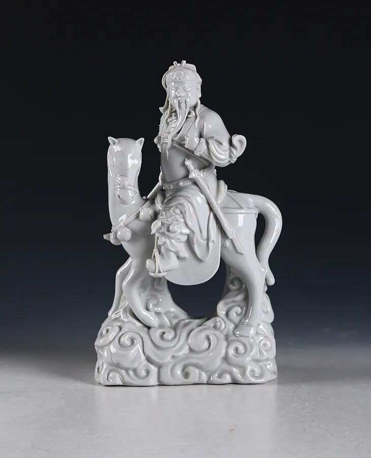 民国·白釉“关公巡城”塑像