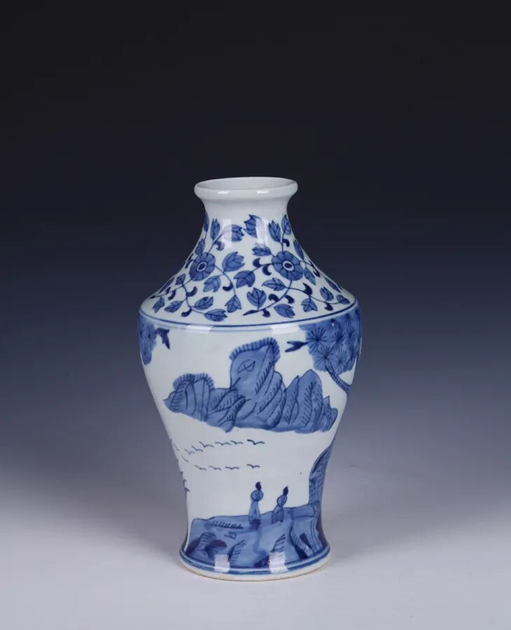 清·青花山水纹瓶1