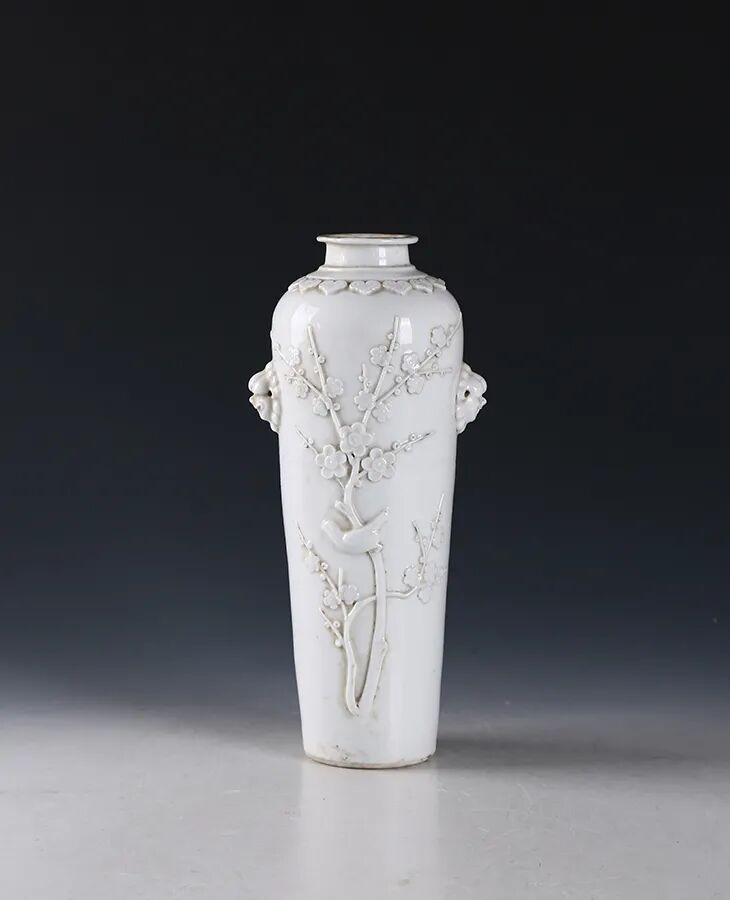 清·白釉堆贴梅花纹兽耳瓶
