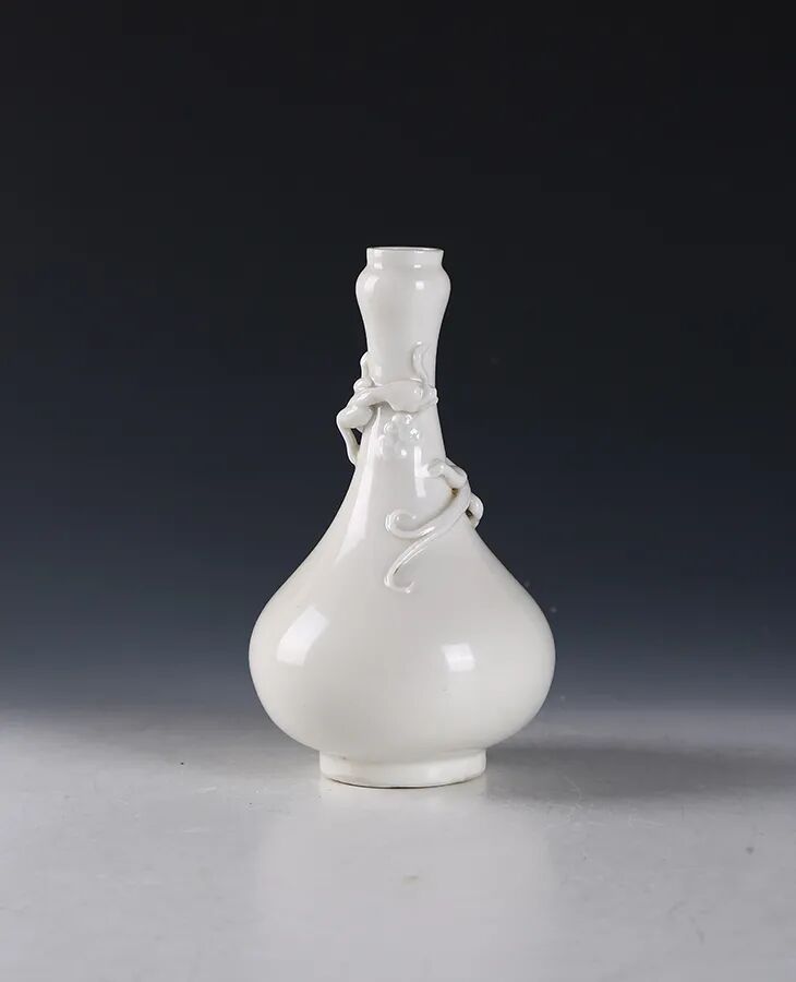 明·白釉螭龙蒜头瓶