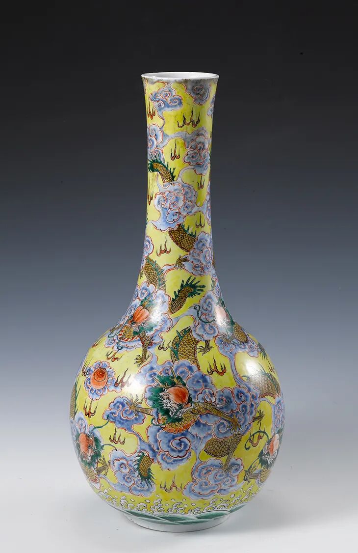 清康熙粉彩九龙天球瓶