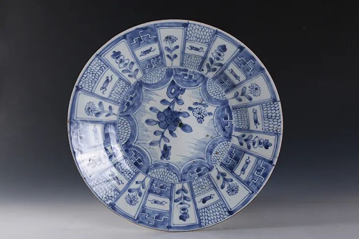 清·青花杂宝书生纹盘