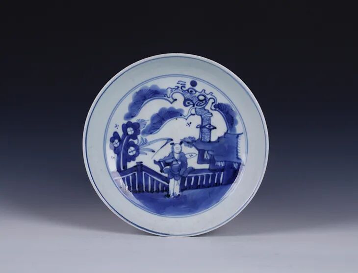 清·青花“携琴访友”纹盘