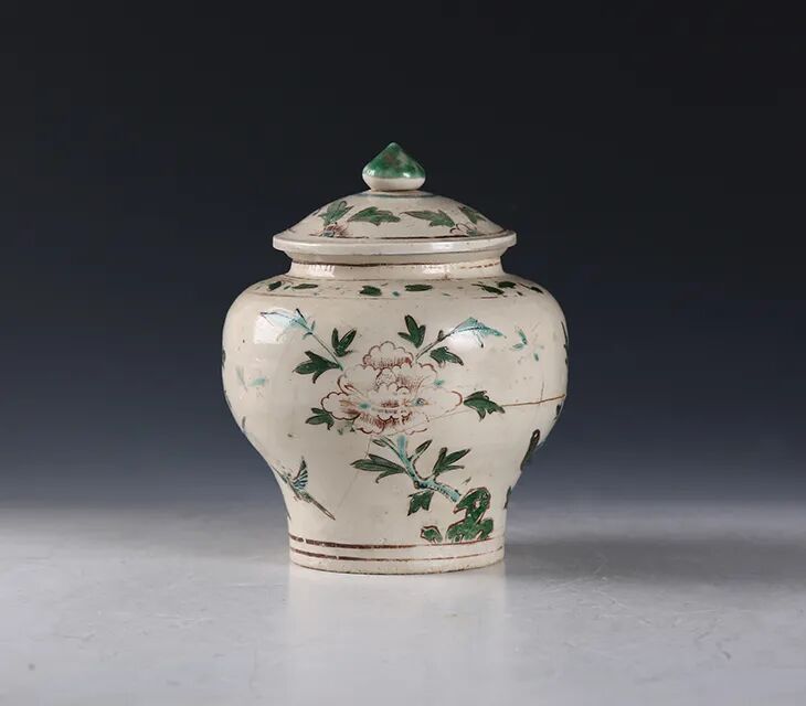 明·五彩折枝牡丹花纹盖罐