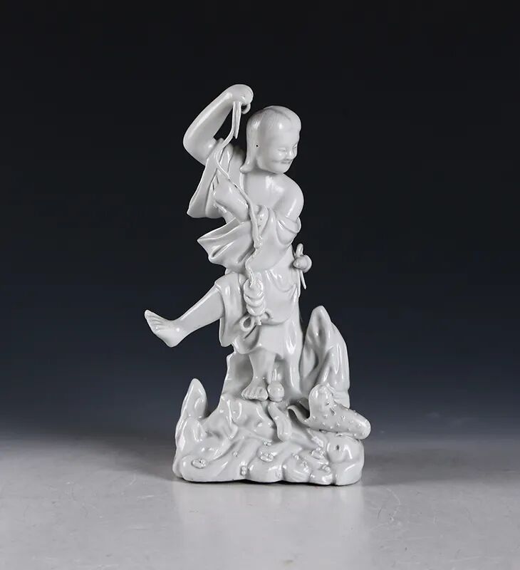 民国·白釉“刘海戏蟾蜍”塑像