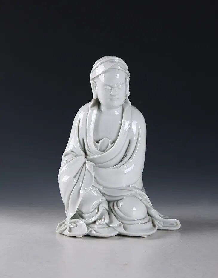 清·白釉“博及渔人”款达摩坐像