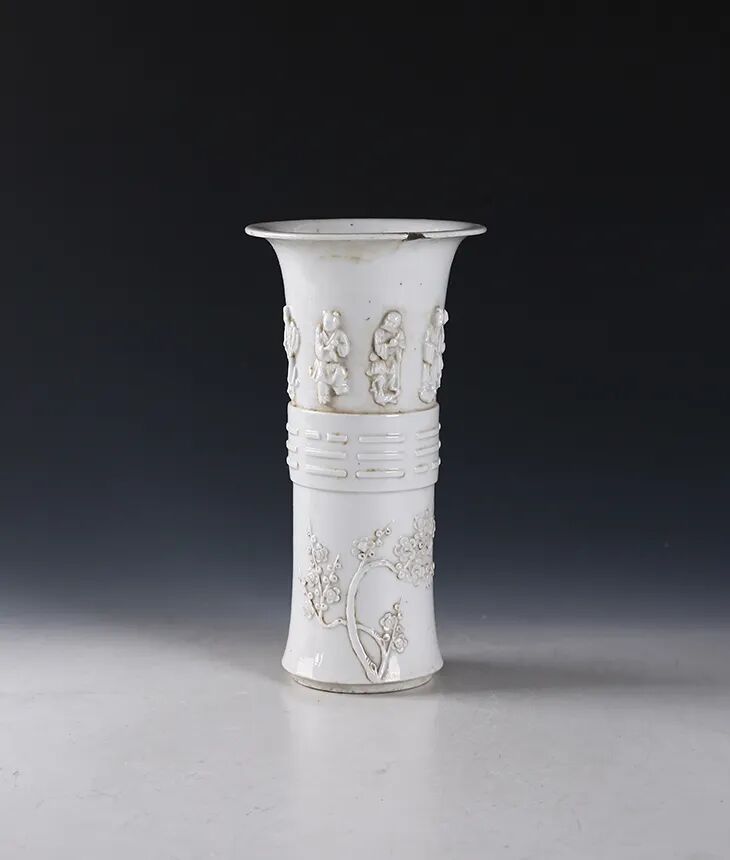 清·白釉八仙八卦纹觚