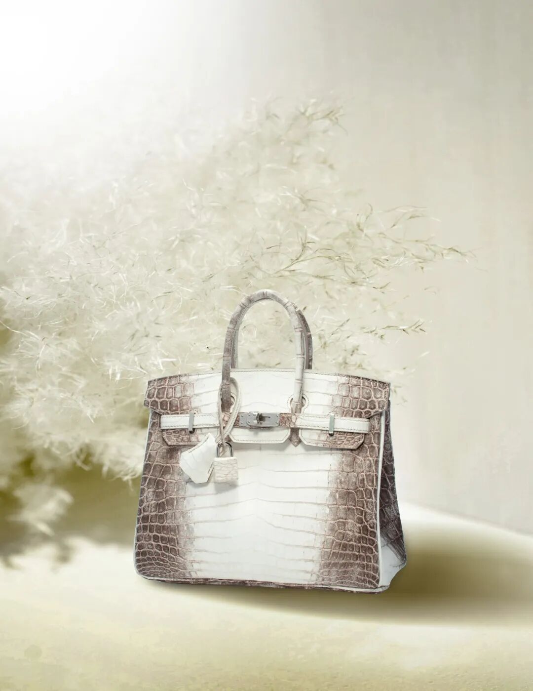 罕见雾面白色喜马拉雅尼罗鳄鱼皮 25 公分柏金包附银色金属配件