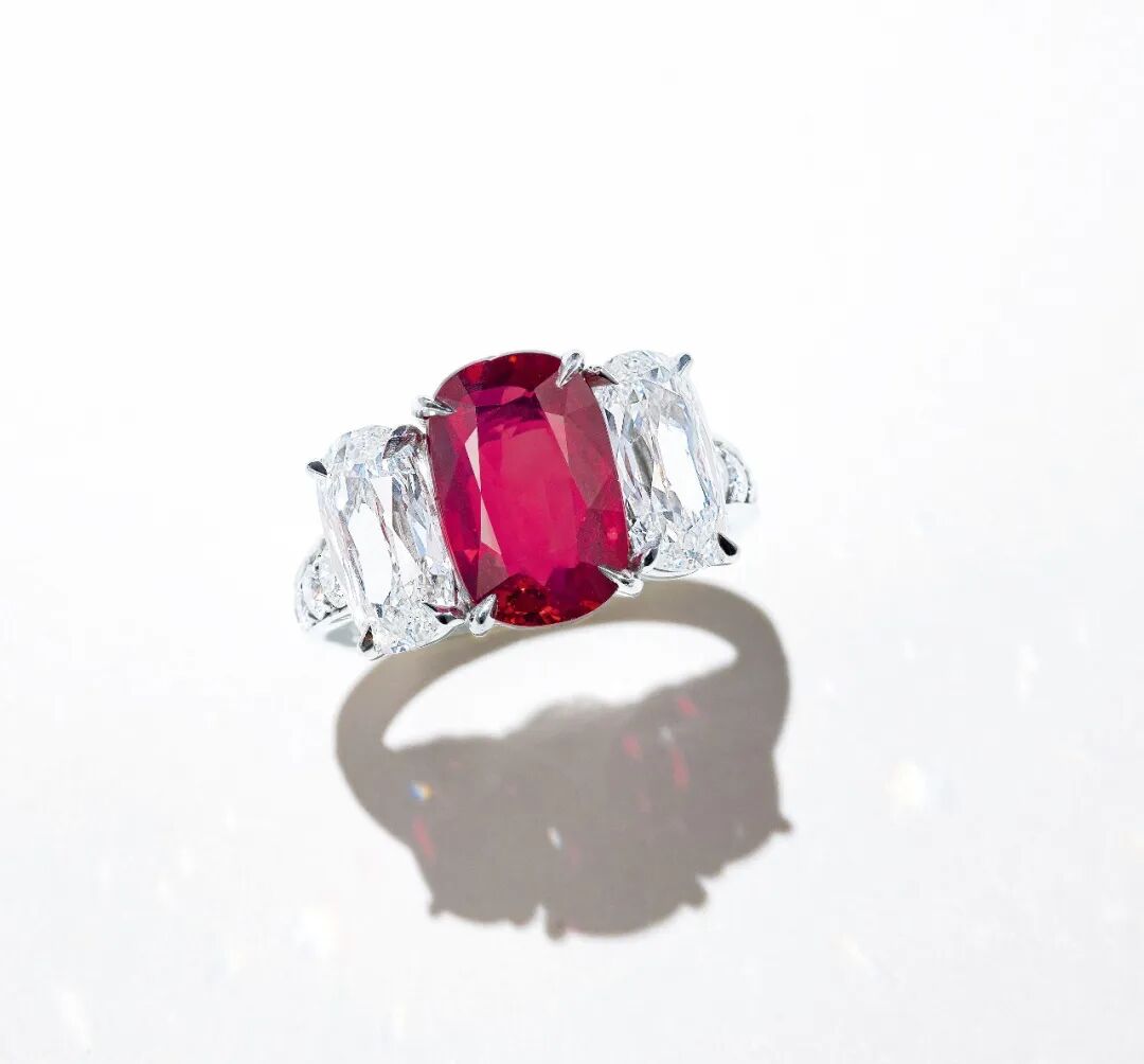 4.01 克拉缅甸「鸽血红」红宝石配钻石戒指,未经加热