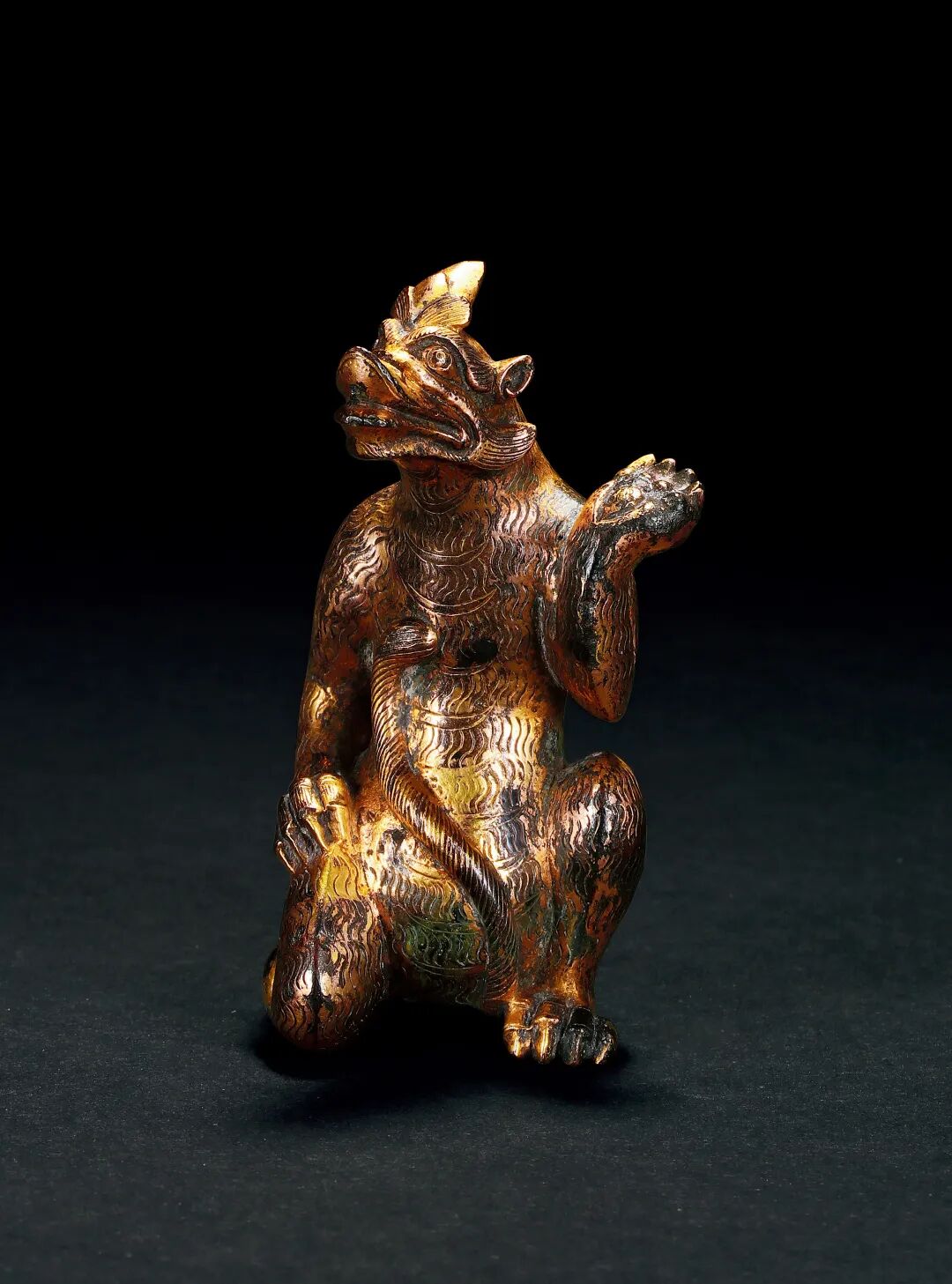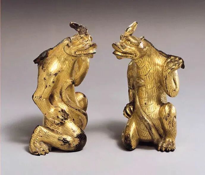 东汉 铜鎏金独角神兽