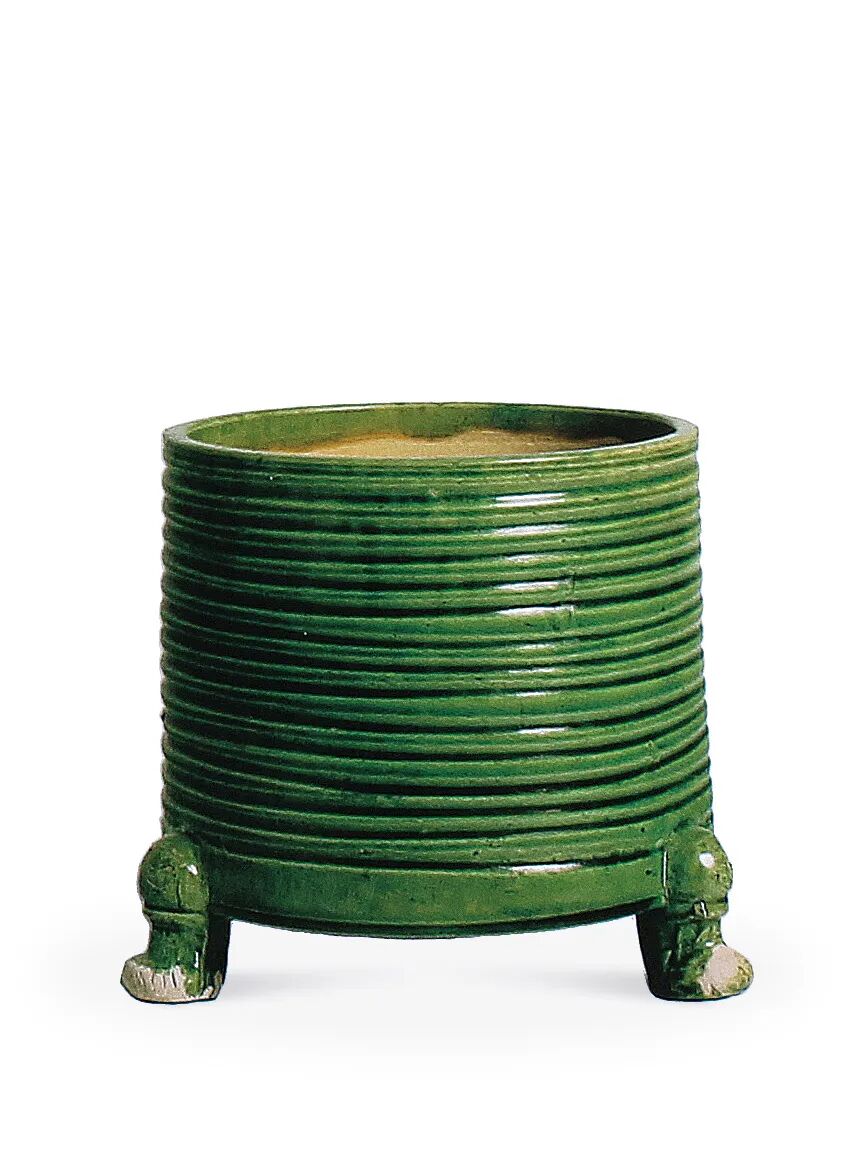 唐 绿釉弦纹三足奁