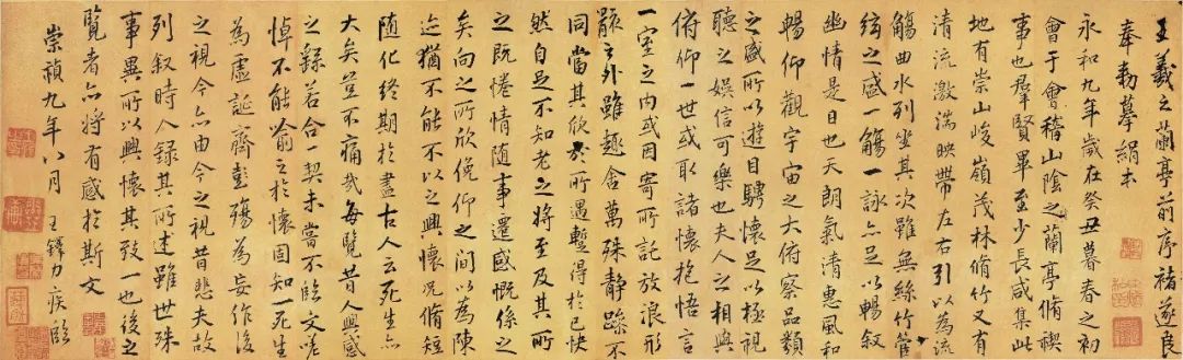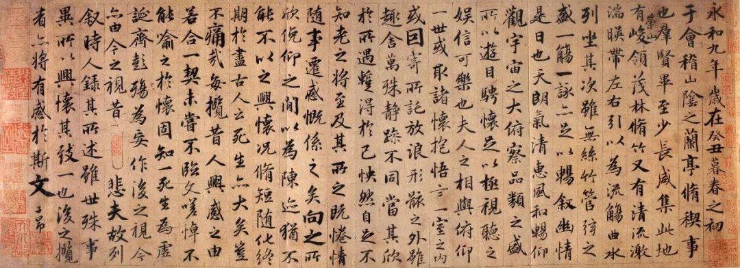 东晋穆帝永和九年(公元353年)三月初三,王羲之与谢安、孙绰等四十一位晋朝顶级军政高官,在山阴(今绍兴)兰亭修禊(xì),商议国家大事,各有诗,辑为《兰亭集》,王羲之为之书写序文手稿,曰《兰亭集序》。