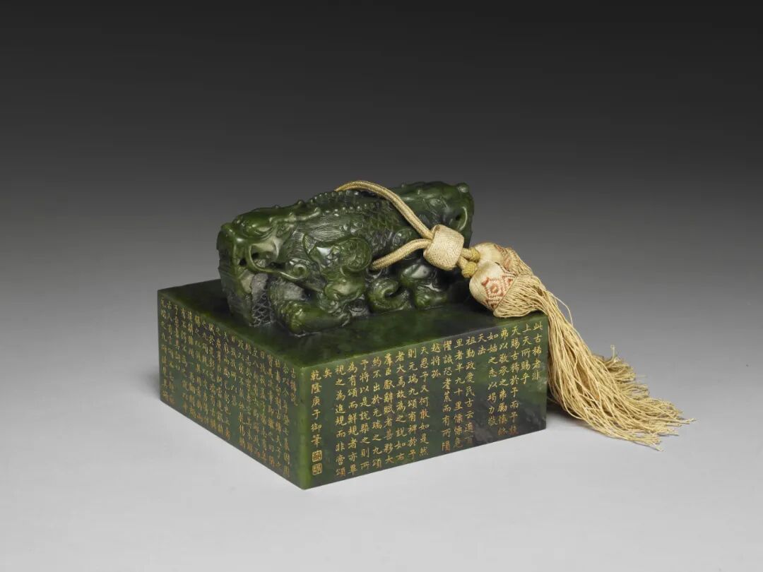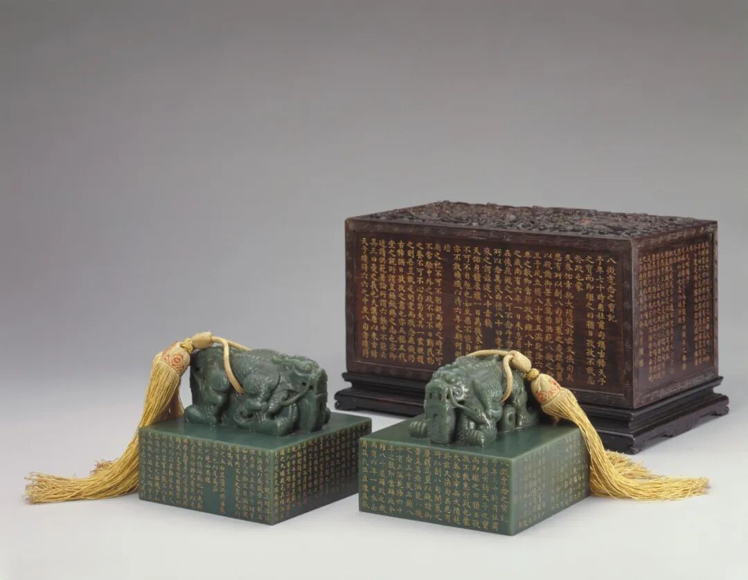 清 乾隆 碧玉古稀天子與八徵耄念之寶璽(紫檀木盒、北京故宮)