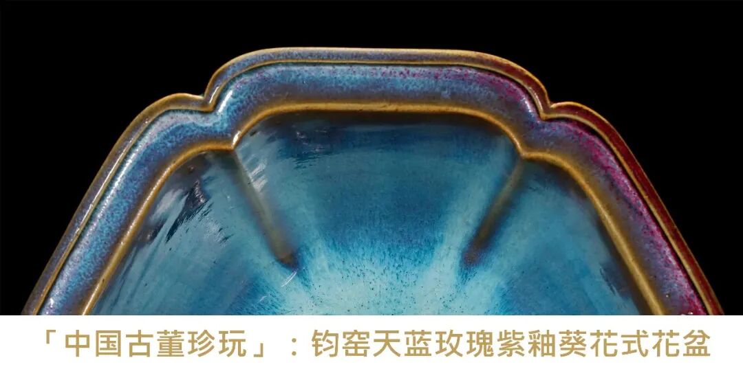 明早期 钧窑天蓝玫瑰紫釉葵花式花盆