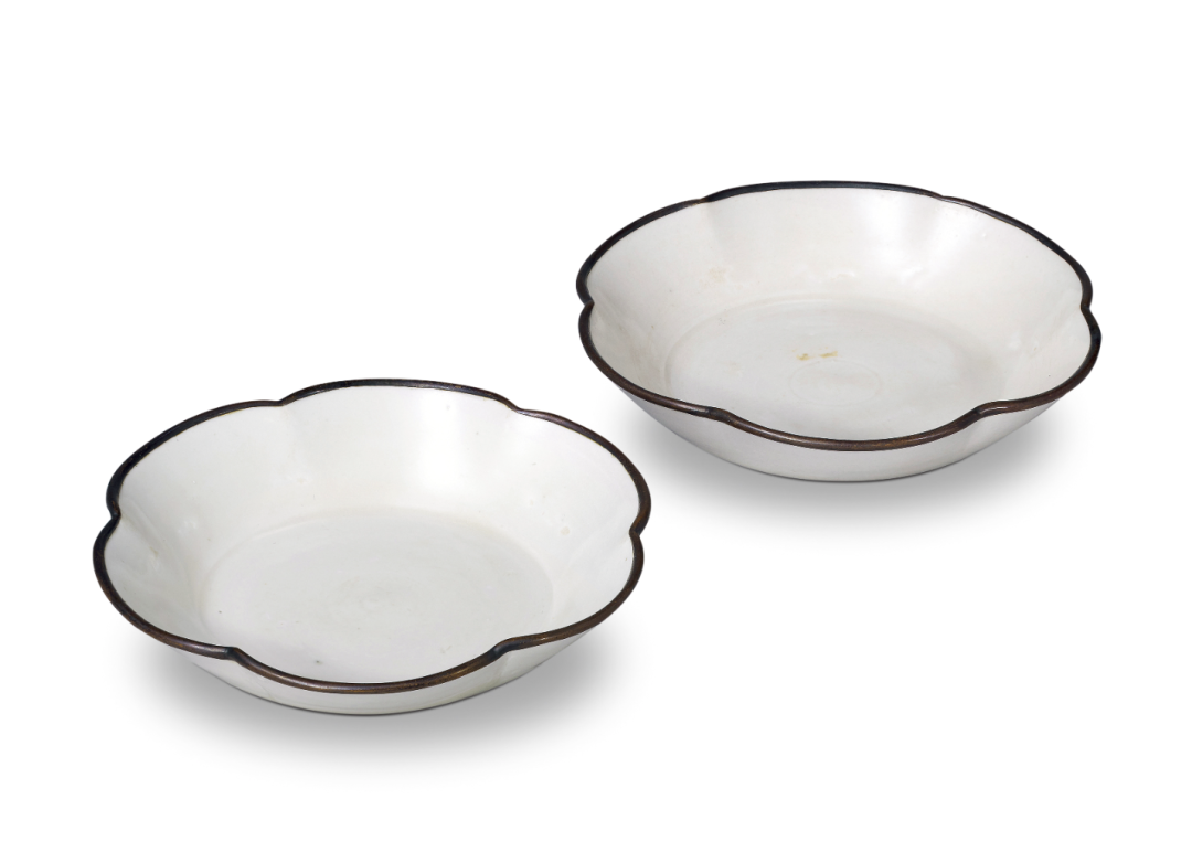 定窑白釉花口碟一对