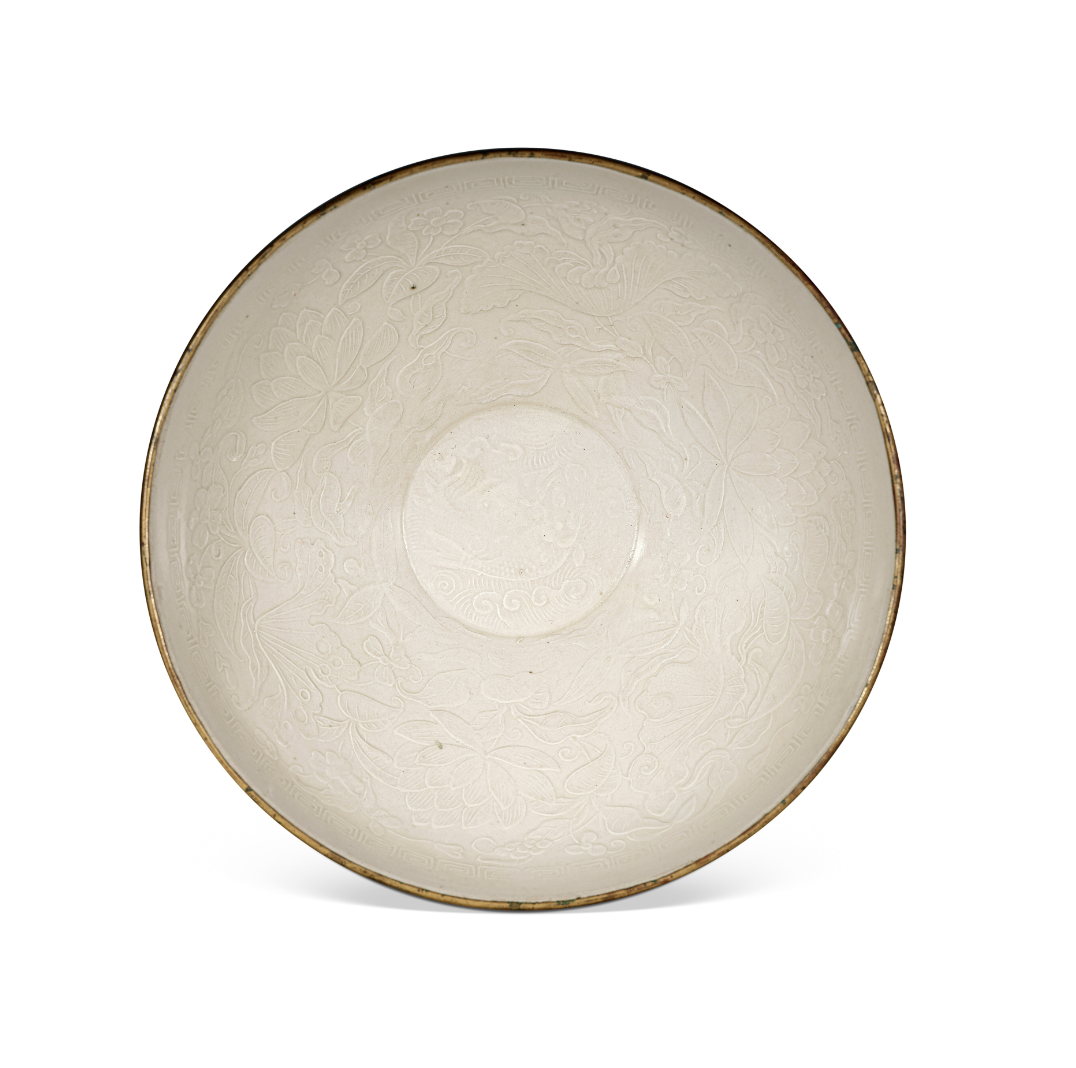 定窑白釉刻画牡丹纹葵口碗