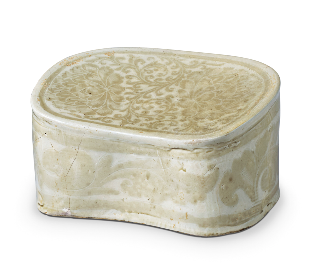 定窑白釉褐彩剔花牡丹纹枕