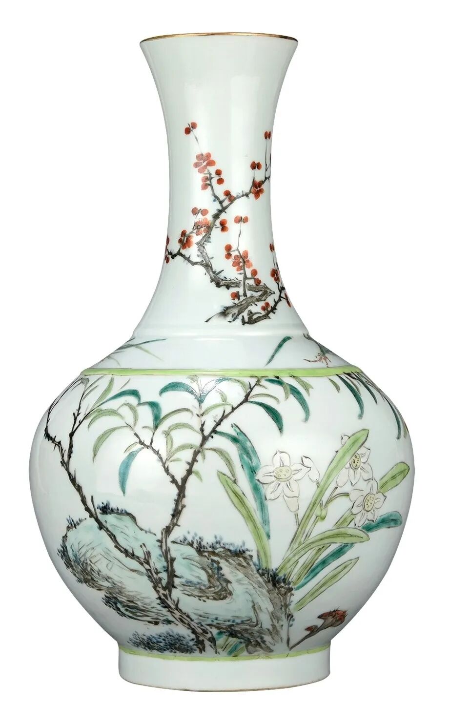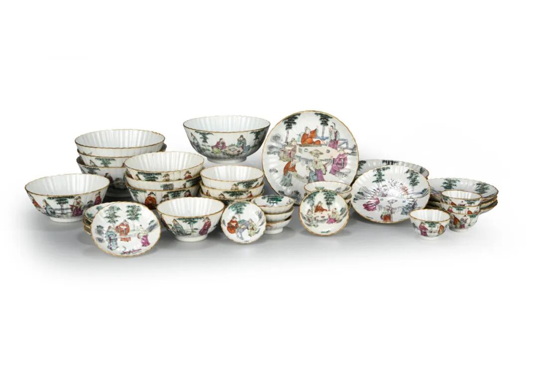 三阳开泰材质洁白细腻,光气莹润。三只羊相互偎依而卧,体态肥腴,神情悠闲温顺,乖巧可爱,场面生动祥和,有清代风格。羊谐音“阳”,故有“三阳开泰”之意,“三阳开泰”一词,出自《易经》,象征着吉祥亨通、家国安泰,即可把玩,又可置于案头陈设。拍品估价:150,000 - 200,000 人民币此件玉璧以黄玉为材琢磨而成,璧缘光滑,以黄褐为主,诸色迭加交融,深入肌理,包浆明显,温润亮泽,迎光视之,南瓜红色秀美凝润。璧两面平整无纹,切削与打磨工艺已近娴熟。实属收藏把玩之珍品。白玉质地,润泽细腻。器物包浆厚润,沁色自然,线条苍劲有力,时代特征明显,具有很好的文化价值和收藏价值。拍品估价:150,000 - 200,000 人民币玉质带钩始于战国,它是人们用在腰带上起扣拢腰带的作用,故名带钩。带钩有以铜、铁、玉等多种材料制成,它的基本形状一般为扭曲“S”形,一端有钩,多作兽首装饰。此物所选白玉质地上乘,白腻温润。一端有红沁,龙首刻划精细入微,器物中间凸起呈瓜楞状,十分少见。三刀蝉线条简洁明了有力度,沁色非常漂亮,用金厚重,佩戴别具一格。红玛瑙算盘珠颗颗精挑细选,颜色酒红,孔道水亮,搭配同年份镂空多孔老金饰,收藏级别的佳作。马蹄尊因形似马蹄而得名,是康熙时期经典的文房用具造型。耿宝昌先生《明清瓷器鉴定》载,马蹄尊又称“马蹄水盂”,有小口和广口两类,本品应属于后者。参阅:佳士得,2010年12月1日,「晔兮如华-葛沃得珍藏御制瓷器」专场,Lot 2812。正面绘单独一只大桃,背面绘三只寿桃。体型硕大。九桃者居多,单桃难得一见。卷缸器型小巧,案上文房器。外施蓝釉,留白绘云龙纹,云龙刻画生动有力量感,肩部和脚部留白弦纹,增加了层次感。小器大样非常可爱。此尊撇口,束颈,垂腹,直足。器型庄重古雅,胎体厚重。青花发色艳丽,釉面简白,有很强的视觉冲击力。整件起舞共分四层纹饰,以康熙较为常见的蕉叶纹形状内绘仿青铜纹为装饰,主体部位回纹锦地绘双铺首。观其品格,端庄周正,诚为佳器。圆口,短颈,丰肩,腹以下渐收,圈足外撇,器形庄重。器身通体五彩描绘凤穿花麒麟纹饰,以墨彩勾勒边饰,和绿彩绘枝叶,以矾红、黄、赭石色填饰牡丹花,花卉茂盛,枝叶浓密,双凤羽翼招展飞于花卉之间,构图饱满,色彩浓艳。筒瓶为明末清初特有之器形,盛行于崇祯、顺治两朝。此筒瓶口沿饰一周大小间隔的蕉叶纹,肩部与胫部均暗刻花纹,此为明末清初琢器最常见的装饰,亦为判断之重要依据。图中所绘人物故事图,为此时期甚为流行的题材。中立一宦者,前身微凸,上身后倾,体态悠然,衣袖飘忽,旁边仆人执旗而立。周围山石花树各具秀色,青花浓淡相配,层次分明。人物绘画古气横溢且有奇趣,尤其仆从武士等皆恢奇恣肆。此瓶直口,粗颈,扁圆腹;抱月瓶腹部呈圆月形凸起,颈肩饰双耳,又称云耳。通体施仿汝釉,有细碎鱼子纹开片;色泽雅致静穆,光泽厚润柔和,圈足露胎处胎体坚质细腻,并拟宋器“香灰胎”之造法。清代仿汝釉器之烧制始于雍正六年唐英督陶之后,以乾隆朝最为成功。乾隆时期瓷器素以精细的艺术风格而著称,颜色釉瓷的烧造品种繁多,制作精湛,仿烧宋代五大名窑的色釉达到了“仿古暗合,与真无二”的程度。拍品估价:100,000 - 150,000 人民币雍正上品粉彩细瓷,绮丽清新,设色华美而不俗,工致精巧而不媚,尤其仕女题材,气质高雅,脉脉含情,每每令人为之叫绝。盒呈圆形,造型饱满,上下子母口套合,鼓腹,圈足。盒身满饰粉彩花卉纹,顶面开光,内绘粉彩仕女婴戏图。此类题材为课子图,在中国儒家传统文化中,“课子”和“孝亲”是两个永恒的主题。清代的课子图堪称中国古代社会重视家庭教育的重要标志,极具弘扬传统美德之意。雍正皇帝对美的追求一向有着严格的标准,脱俗是其强调的主题,登基以前胤祯领衔创作的《雍亲王题书堂深居图十二屏》则是宣示他对仕女的审美倾向。画中所绘的十二位美人,颇具古气,丽质不凡,举止装扮,毫无俗艳之处。故雍正瓷之仕女题材,俱以此为范,气质相同,神韵一致,充分反映了雍正时期粉彩人物画的高超水平。拍品估价:100,000 - 150,000 人民币此件葫芦瓶,瓶口微撇,长颈,呈葫芦形,造型优美,胎质细腻,釉面白中泛青。青花色泽淡雅柔和,画面布局繁满,人物造型生动传神,绘画流畅,笔意流转自如,青花用料讲究,发色清淡,整器形制规整,典雅庄重。在崇祯同类青花葫芦瓶中较为罕见,其风格极具时代特征,是崇祯时期青花瓷器精品,十分罕有。葫芦承载着厚重的传统文化内涵,所以葫芦造型的瓷器早就登上了瓷器王国的舞台,成了我国古老陶瓷文化百花园中一道独特的风景线。此件葫芦瓶为明代崇祯时期极具典型色彩的一件代表力作,十分难得。本品撇口,束颈,溜肩,鼓腹,圈足,器呈标准赏瓶式。来源:“兰生珍藏”