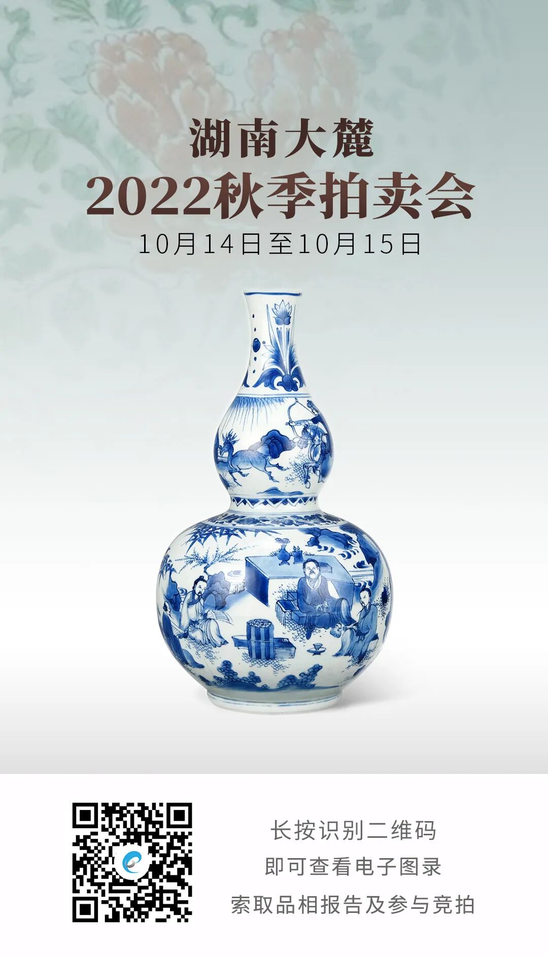 湖南大麓珍宝古玩城得名于岳麓书院楹联“纳于大麓,藏之名山”,位于湖南省韭菜园古玩文化街28号,是省内目前唯一具有文物经营资质的民营古玩市场。10月12日,湖南大麓『2022秋季拍卖会』将在湖南大麓珍宝古玩城4楼开启预展,并于10月14日至15日期间在同地举行拍卖。本次秋拍共设「古董玉器」和「古董瓷器」两大专场,呈现640余件精彩拍品,联拍在线全程直播,并提供实时同步竞拍技术与服务支持。其中,瓷器部分汇集明清青花、粉彩、单色釉等各类佳器,题材丰富,精品荟萃。古玉部分的所有拍品均收录中国收藏家协会民间文物艺术品(玉器)备案系统,并由璞鉴古玉鉴定备案平台出具备案证书。