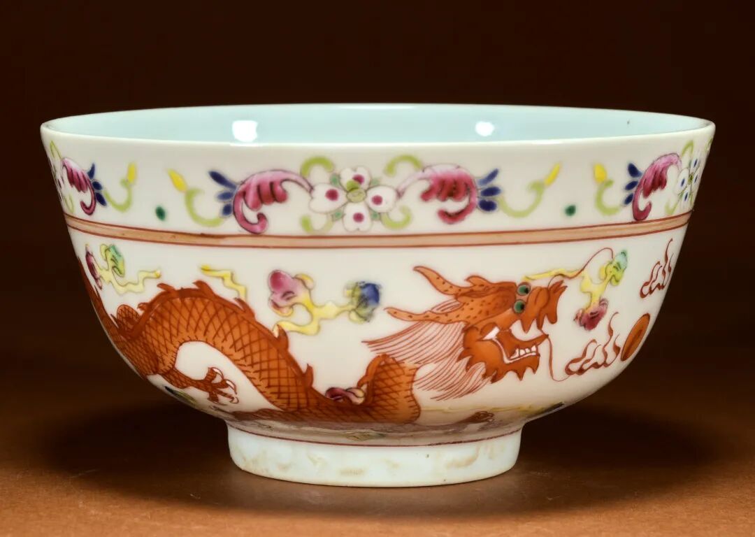 民国 粉彩双龙戏珠纹碗
