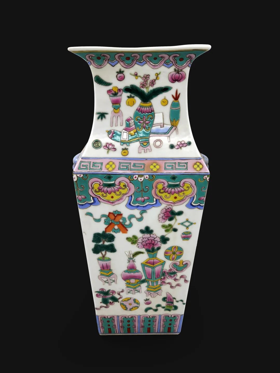 民国 粉彩博古方口瓶