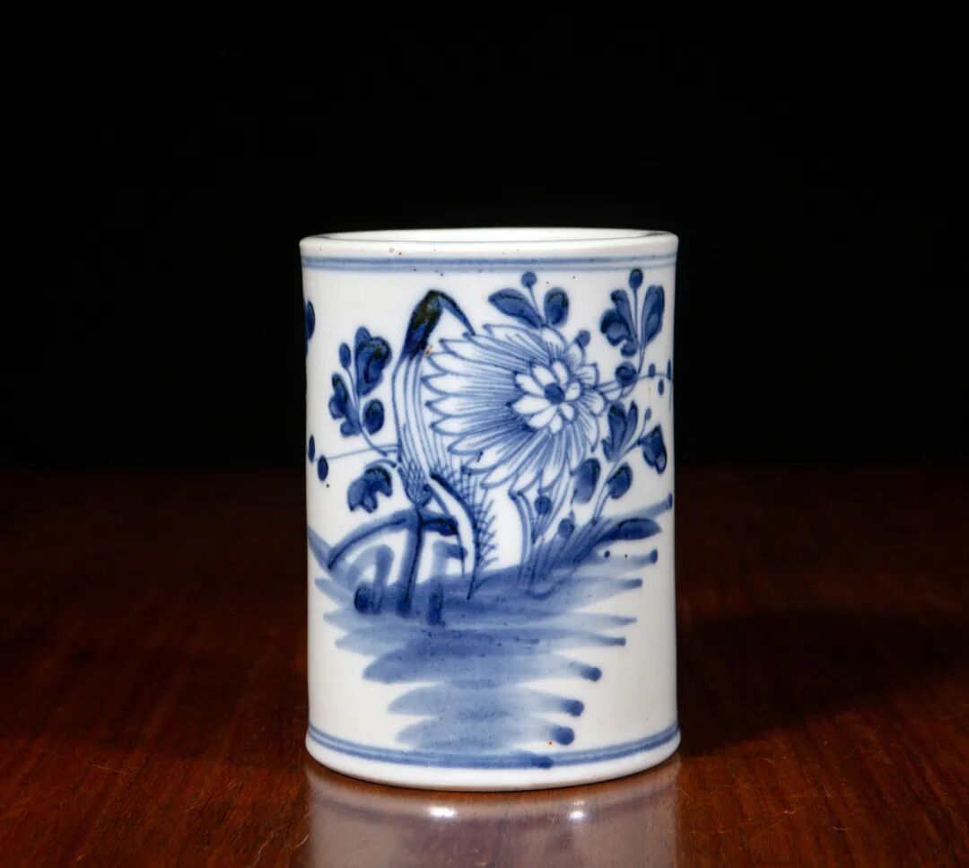 清乾隆 青花花卉笔筒