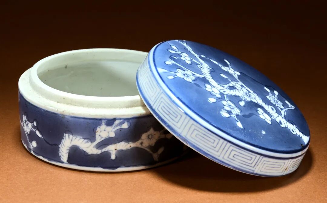 清晚期 青花冰梅盖盒