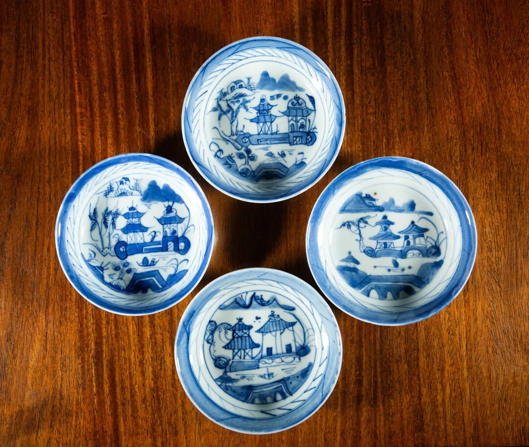 清康熙 青花山水阁楼小盘(4只)