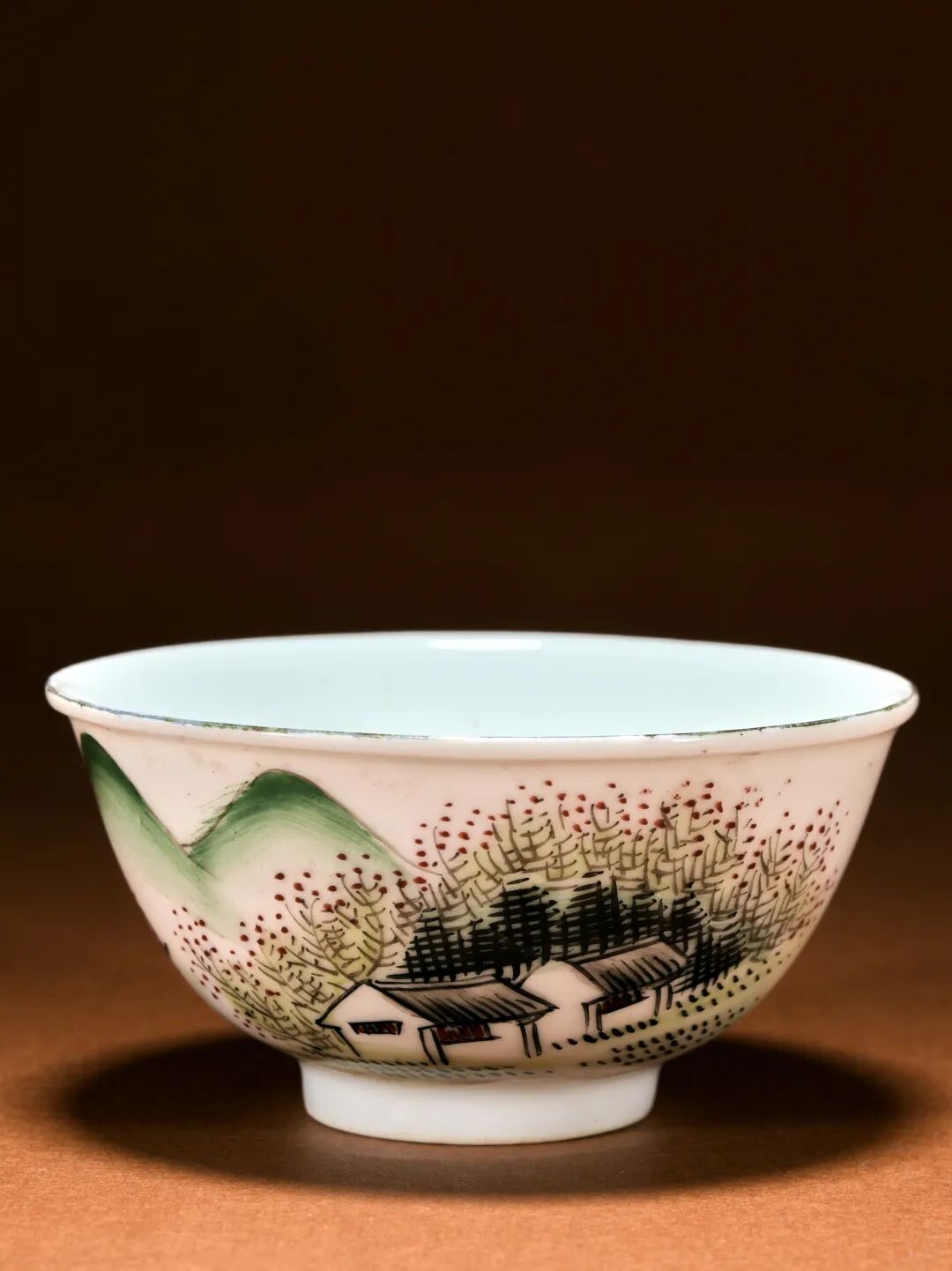 民国 粉彩山水诗文茶圆
