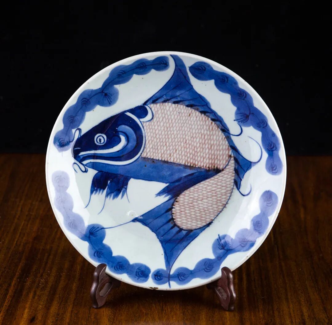 清乾隆 青花加紫鲤鱼盘