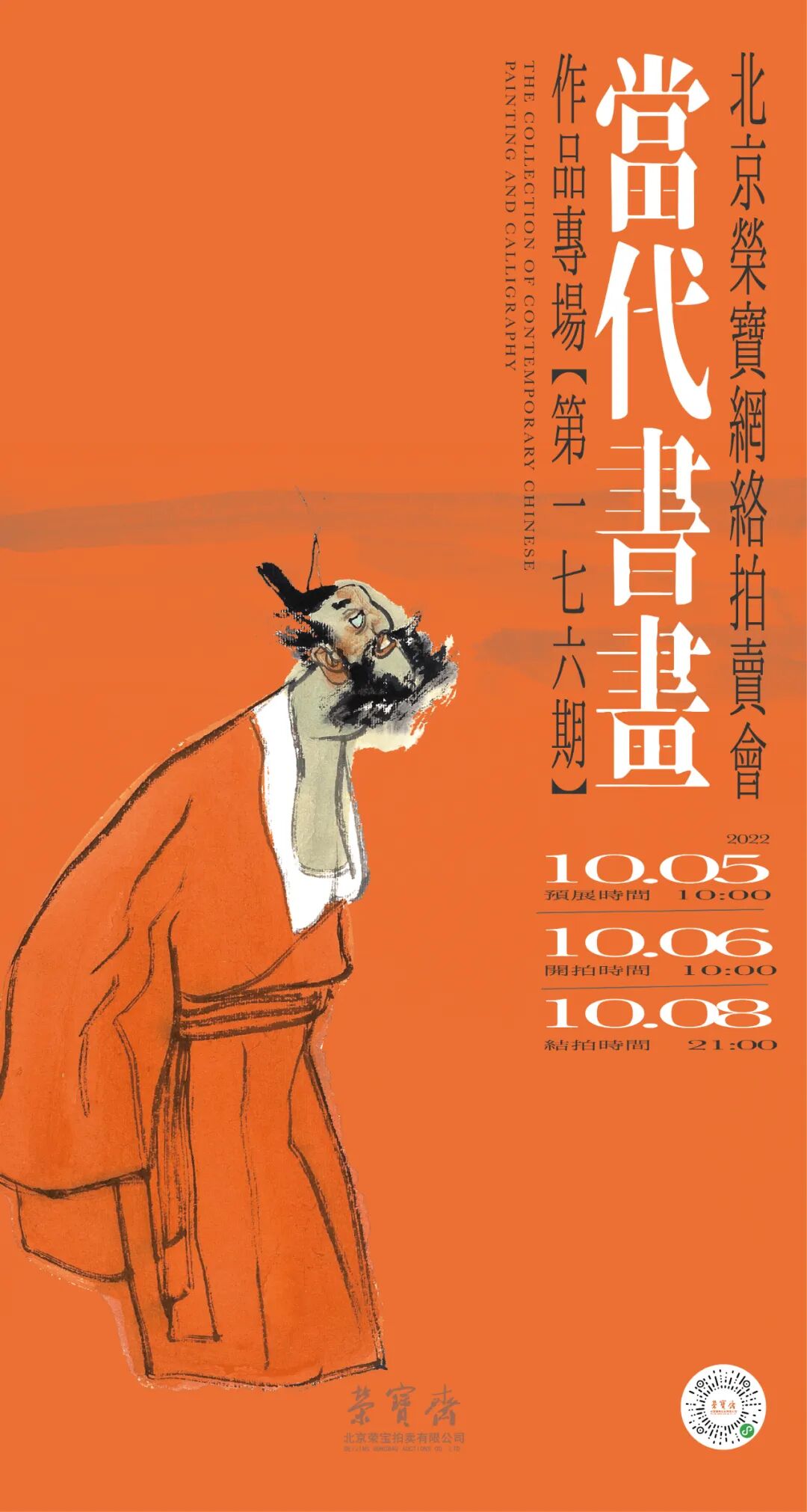 北京荣宝·当代书画作品专场网络拍卖会(第一七六期)将于10月5日10:00—10月6日10:00开启线上预展,并于10月6日10:00开拍,10月8日21:00结拍。