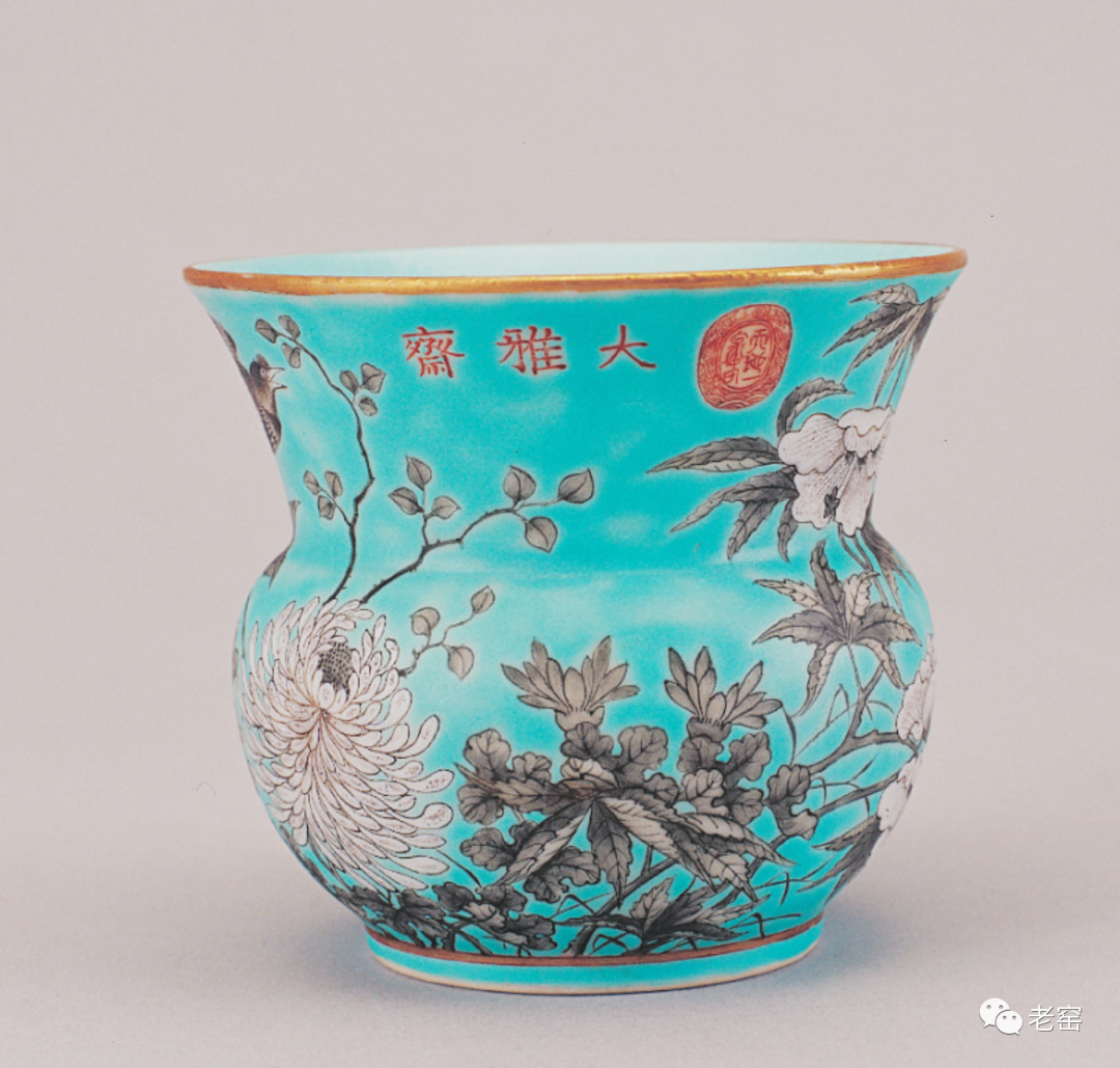 清光绪 绿地墨彩花鸟纹奓斗(底款) 北京故宫博物院馆藏