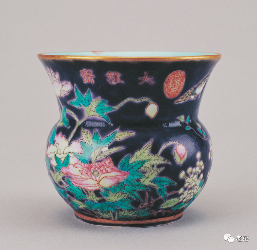 清 乾隆款铜胎画珐琅花卉纹渣斗 台北故宫博物院馆藏
