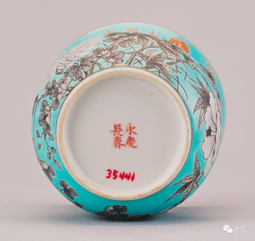 清 粉彩浮雕花卉纹渣斗(底部) 美国大都会博物馆藏