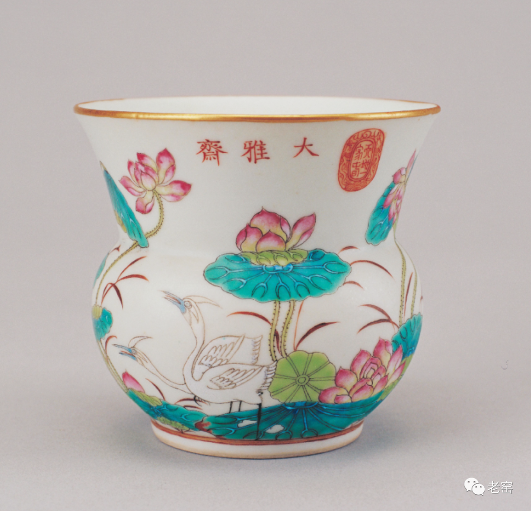 清光绪 粉彩荷花鹭鸶纹奓斗(正面) 北京故宫博物院馆藏
