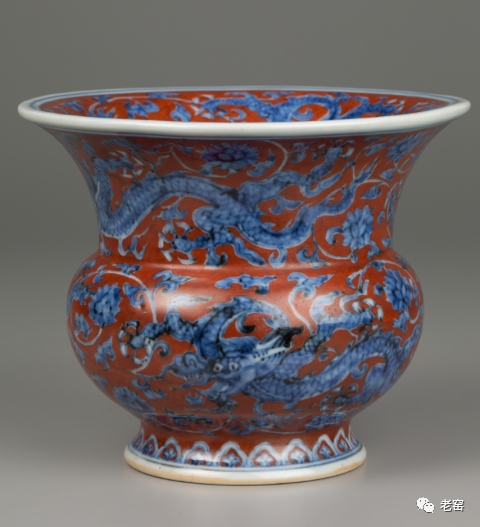 明正德 红地青花龙纹渣斗(整体) 美国哈佛艺术博物馆藏