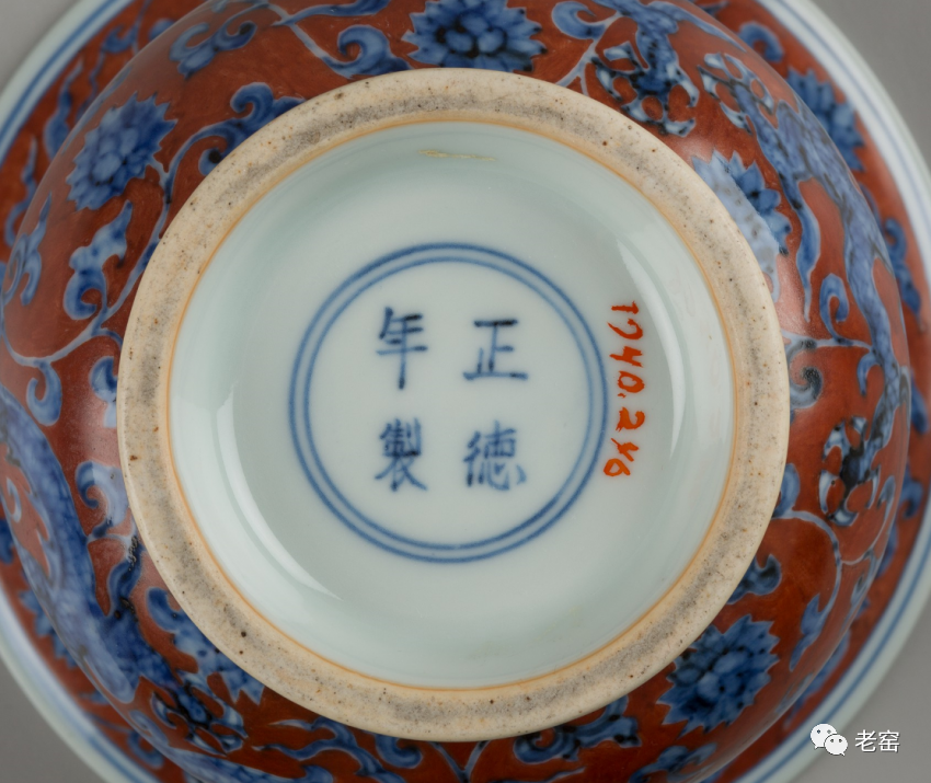 明正德 红地青花龙纹渣斗(底部款识) 美国哈佛艺术博物馆藏