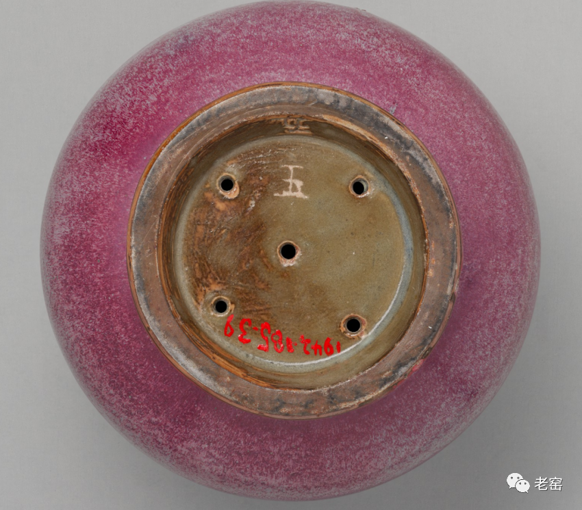 明 钧窑胭脂红釉渣斗式花盆(底部) 美国哈佛艺术博物馆藏