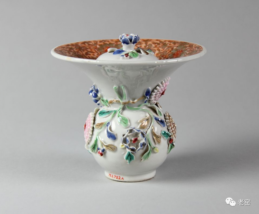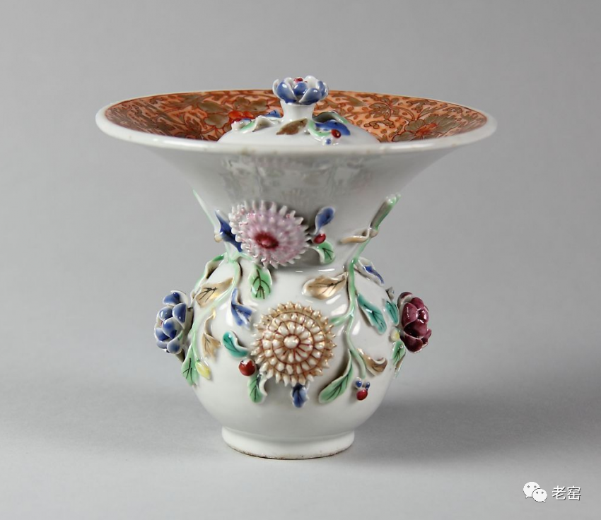 清 粉彩浮雕花卉纹渣斗(正面) 美国大都会博物馆藏