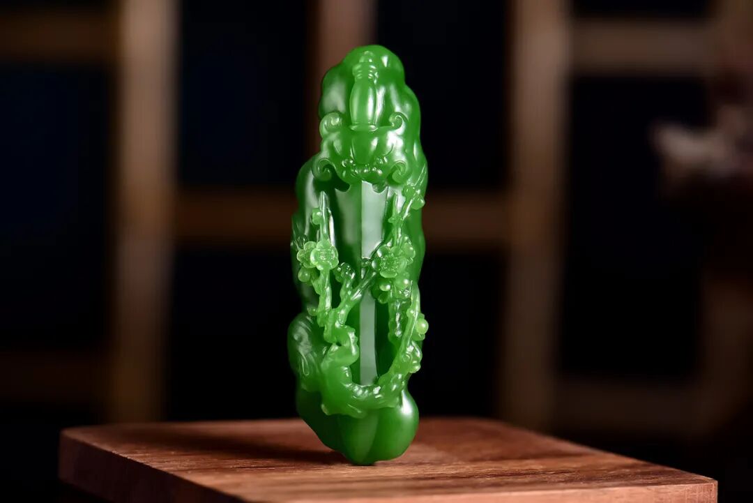 碧玉媲美翡翠,以俄罗斯碧玉质量最佳。在玉器市场除了白玉最多,接着就是碧玉,碧玉颜色有深绿、阳绿、菠菜绿、苹果绿等等。去年碧玉苹果绿价格上涨不少,没有黑点的苹果绿挂件价格都五位数左右起步。