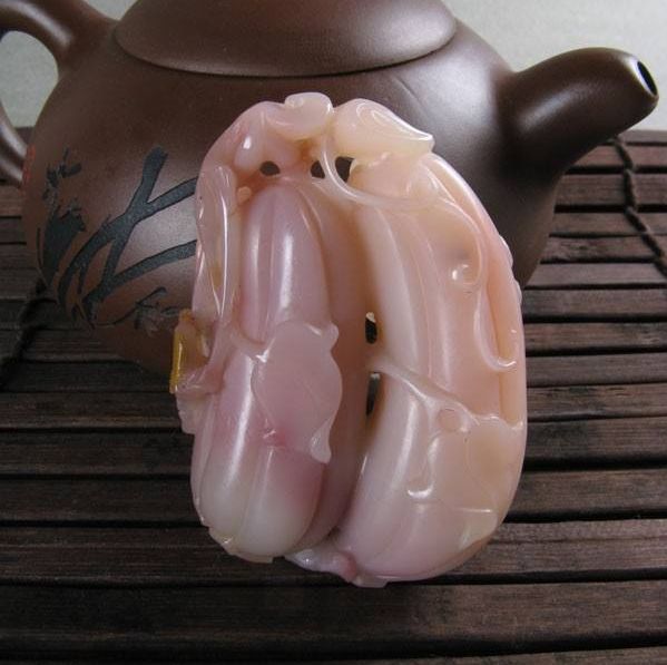 除了籽料直闪石桃花玉,还有青海料中的透闪石藕粉,青海料藕粉颜色从浅糖过渡到粉色,也是玉器市场市场的一大卖点。见过了太多白青碧,粉色玉一出现,便在市场一石激起千层浪,价格直线上升。