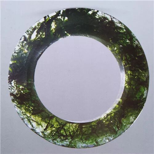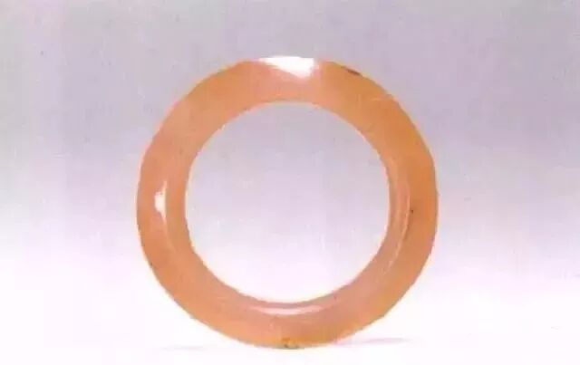 半透明,内透淡黄色。环的内、外边缘呈棱状,由内到外缘渐薄。外径8、内径5.5厘米。中山王族四号墓出土。