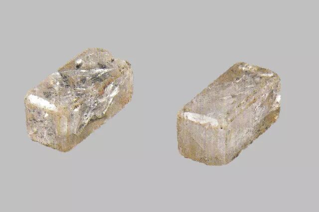长方柱形,使用痕迹明显。长2.4、宽高各为1.1厘米。中山王族三号墓出土。